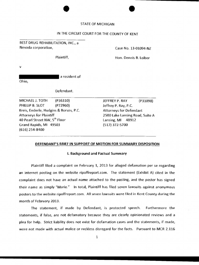 Defendant 2500 Lake Lansing Road, Suite A Lansing,