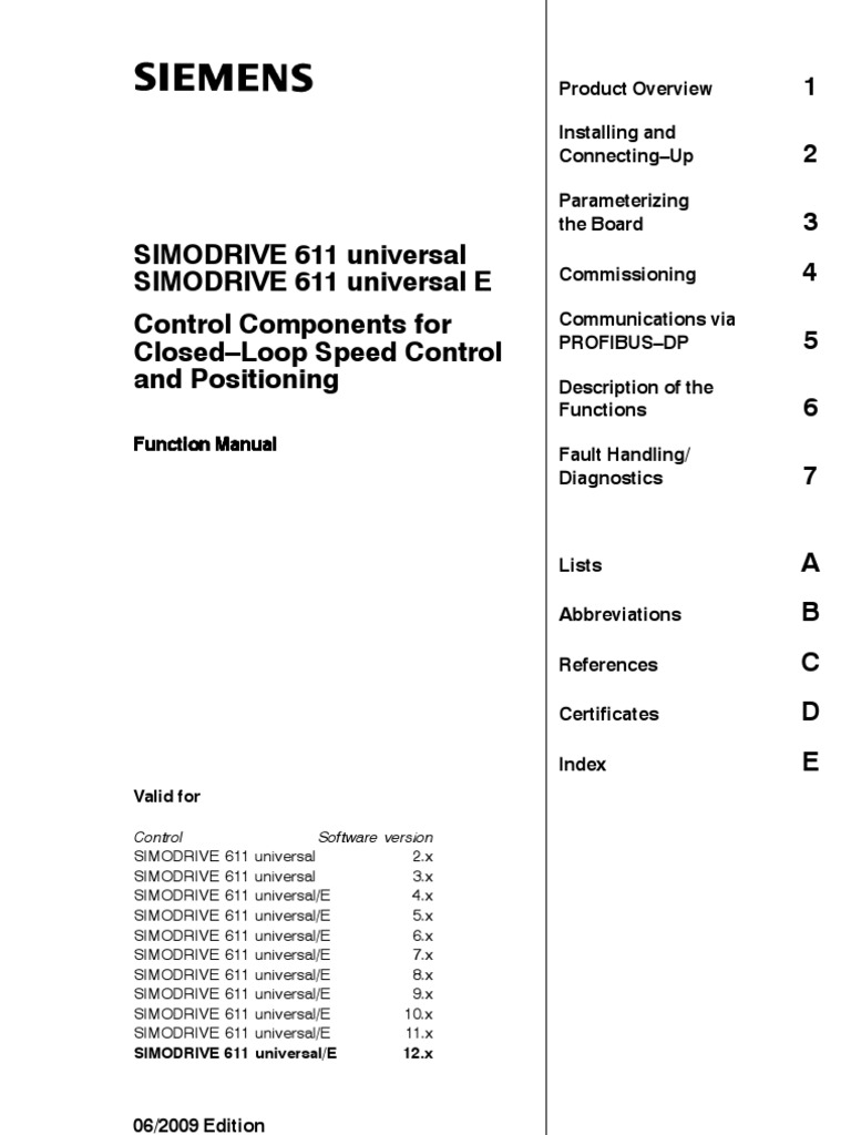 Function Manual SIMODRIVE 611 universal SIMODRIVE 611 universal E Control Components for ClosedLoop Speed Control and Positioning