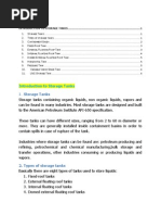 a roof that floats on the surface of the stored liquid, rising and falling with the liquid level. The fixed roof is comprised of a deck, fittings, and rim seal system. Fixed roof decks are constructed of welded steel plates and are of three general types: pan, pontoon, and double deck. Although numerous pan-type decks are currently in use, the present trend is toward pontoon and double-deck type fixed roofs. Manufacturer supply various versions of these basic types of fixed decks, which are tailored to emphasize particular features, such as full liquid contact, load-carrying capacity, roof stability, or pontoon arrangement. The liquid surface is covered by the fixed deck, except in the small annular space between the deck and the shell; the deck may contact the liquid or float directly above the surface on pontoons. External fixed roof tanks are equipped with a rim seal system, which is attached to the roof perimeter and contacts the tank wall. The rim seal system slides against the tank wall as the roof is raised and lowered. The fixed deck is also equipped with fittings that penetrate the deck and serve operational functions. The external fixed roof design is such that evaporative losses from the stored liquid are limited to losses from the rim seal system and deck fittings (standing storage loss) and any exposed liquid on the tank walls (withdrawal loss). Internal Fixed Roof Tank That tank has both, a permanent fixed roof and a fixed roof inside. There are two basic types of internal fixed roof tanks: Tanks in which the fixed roof is supported by vertical columns within the tank Tanks with a self-supporting fixed roof and no internal support columns The fixed roof is not necessarily free of openings but does span the entire open plan area of the vessel. Fixed roof tanks that have been retrofitted to employ an internal fixed roof are typically of the first type, while external fixed roof tanks that have been converted to an internal fixed roof tank typically have a self-supporting roof. Tanks initially constructed with both a fixed roof and an internal fixed roof may be of either type. An internal fixed roof tank has both a permanently affixed roof and a roof that floats inside the tank on the liquid surface (contact deck) or is supported on pontoons several inches above the liquid surface (noncontact deck). The internal fixed roof rises and falls with the liquid level. Domed External Fixed Roof Tank Domed external fixed roof tanks have the heavier type of deck used in external fixed roof tanks as well as a fixed roof at the top of the shell like internal fixed roof tanks. Domed external fixed roof tanks usually result from retrofitting an external fixed roof tank with a fixed roof. As with the internal fixed roof tanks, the function of the fixed roof is not to act as a vapor barrier, but to block the wind. The type of fixed roof most commonly used is a self supporting aluminum dome roof, which is of bolted construction. Like the internal fixed roof tanks, these tanks are freely vented by circulation vents at the top of the fixed roof. The deck fittings and rim seals, however, are basically identical to those on external fixed roof tanks. Horizontal Tank Horizontal tanks are constructed for both above-ground and underground service. Horizontal tanks are usually constructed of steel, steel with a fiberglass overlay, or fiberglass-reinforced polyester. Horizontal tanks are generally small storage tanks. Horizontal tanks are constructed such that the length of the tank is not greater than six times the diameter to ensure structural integrity. Horizontal tanks are usually equipped with pressurevacuum vents, gauge hatches and sample wells, and manholes to provide accessibility to these tanks. In addition, underground tanks may be cathodically protected to prevent corrosion of the