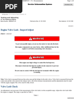 3. Check the coolant level. Maintain the coolant level within 13 mm (0.5 inch) below the bottom of the pipe for lling. Maintain the coolant level within 13 mm (0.5 inch) to the proper level on the sight glass (if equipped). 4. Clean the cooling system ller cap. Inspect the gasket that is on the cooling system ller cap. If the gasket that is on the cooling system ller cap is damaged, discard the old cooling system ller cap and install a new cooling system ller cap. If the gasket that is on the cooling system ller cap is not damaged, perform a pressure test. A 9S-8140 Pressurizing Pump is used to perform the pressure test. The correct pressure for the cooling system ller cap is stamped on the face of the cooling system ller cap. If the cooling system ller cap does not retain the correct pressure, install a new cooling system ller cap. 5. Start the engine. Inspect the cooling system for leaks and for proper operating temperature.
