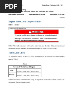 2. Crank the engine with the throttle lever in the CLOSED position until the engine starts. Note: If necessary, loosen the union nuts (1) on the fuel injection lines at the connection with the fuel injector until fuel is evident. Stop cranking the engine. Tighten the union nuts (1) to a torque of 30 Nm (22 lb ft). 3. Start the engine and run the engine at idle for one minute. NOTICE Do not crank the engine continuously for more than 30 seconds. Allow the starting motor to cool for two minutes before cranking the engine again. 4. Cycle the throttle lever from the low idle position to the high idle position three times. The cycle time for the throttle lever is one second to six seconds for one complete cycle. Note: In order to purge air from the fuel injection pump on engines with a xed throttle, the engine should be run at full load for thirty seconds. The load should then be decreased until the engine is at high idle. This should be repeated three times. This will assist in removing trapped air from the fuel injection pump. 5. Check for leaks in the fuel system.