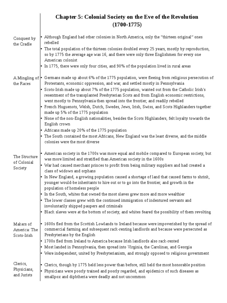 Chapter 5: Colonial Society on the Eve of the Revolution (1700-1775)