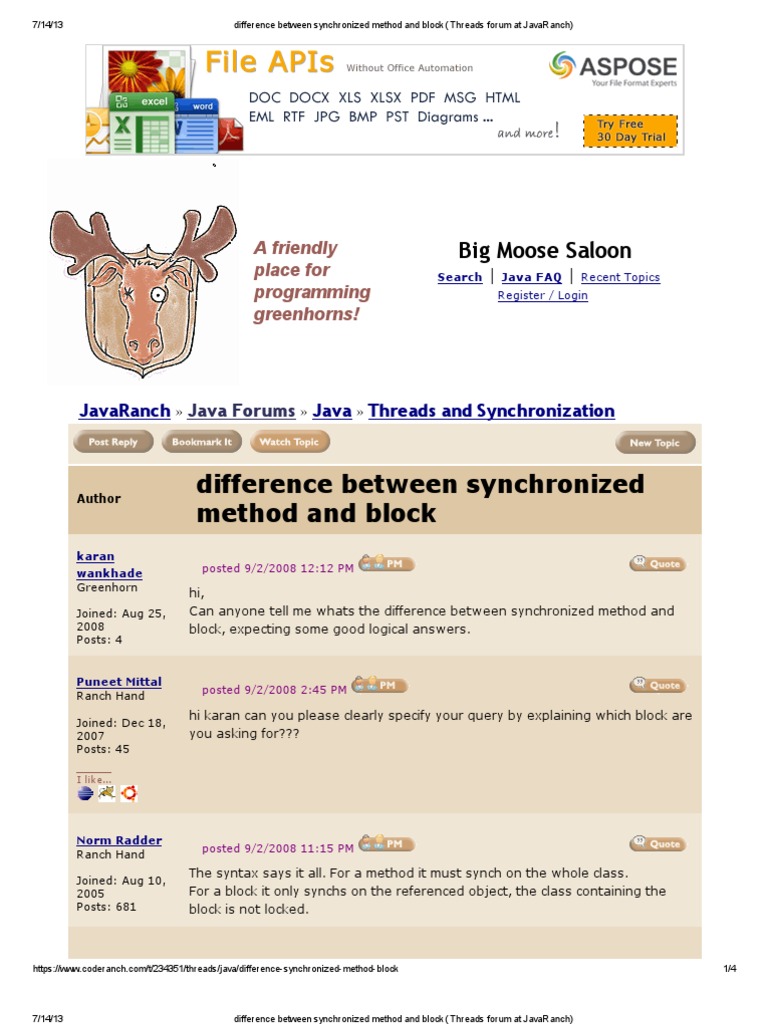 JavaRanch Java Forums Java Threads and Synchronization