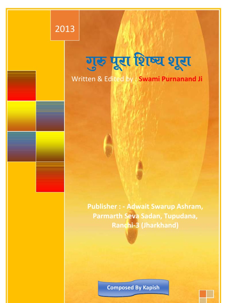 This book "Guru Pura Shishya Sura" is based on the divine instances occurred while the Sadhak stage of Swami Param. He served his Holy Master Baba Swarupnand Ji Maharaj (Shri Nangali Sarkar) with utmost devotion and dedication being irrespective of all the body feelings and pleasure. The book shows that as the Guru was fully enlightened and full of divine knowledge so the disciple or aspirant was bold and keen to his duties whom his Gurudeo used to call by so many endearing names such as Aashik, Mastana and Hanuman etc.