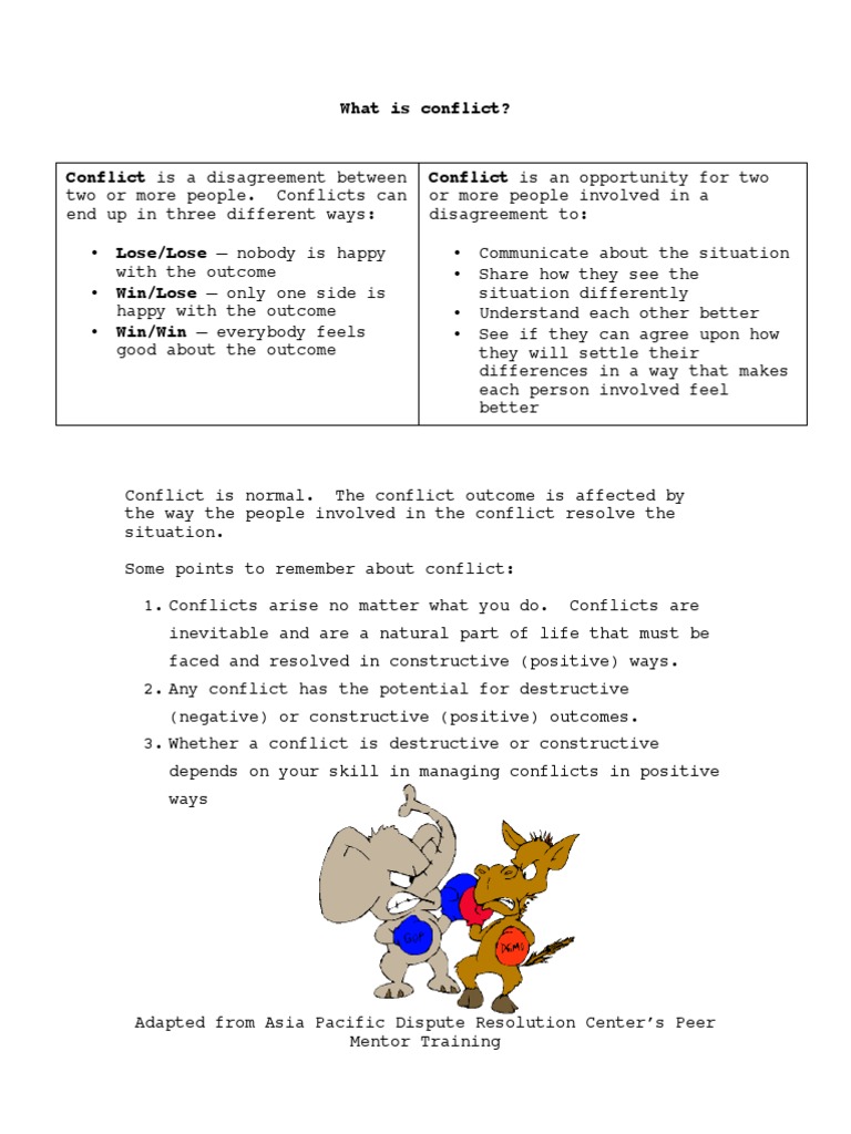 Adapted from Asia Pacific Dispute Resolution Center’s Peer Mentor Training