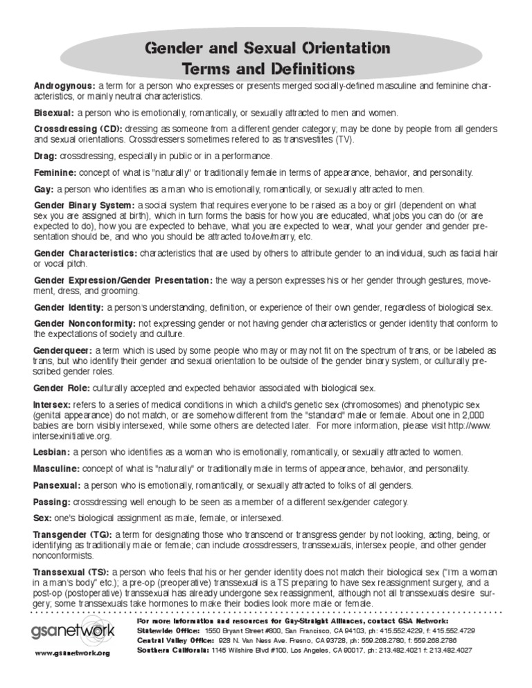 Gender and Sexual Orientation Terms and Definitions