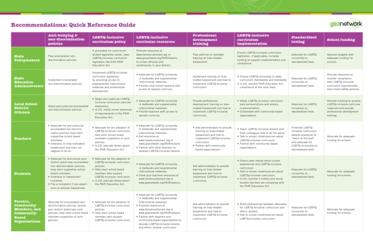 Recommendations: Quick Reference Guide
