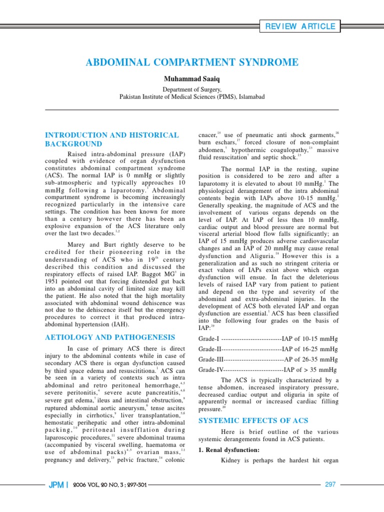 abdominal pressure. Ann Surg 1983;197:183-7. compartment syndrome: Etiology, detection