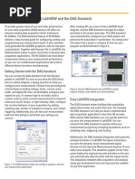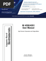 Run the NI-DAQ Configuration Utility to configure and test your NI 4350. (If you need help during the configuration and testing process, open the NI-DAQ Configuration Utility help file by selecting Help Topics from the Help menu.) a. b. Open the NI-DAQ Configuration Utility from the StartProgramsNI-DAQ for Windows menu. The NI-DAQ configuration utility detects the NI 4350 you installed and the Found New NI-DAQ Hardware dialog box opens. Click on Yes to use this instrument in your configuration. In the System window, assign a device number to your NI 4350. You will use this device number to access your NI 4350 from software applications. Click on Next. In the Accessory window, select an accessory to attach to your instrument. Click on Finish and your NI 4350 appears in the NI-DAQ Devices list with the assigned device number. Highlight your NI 4350 instrument in the NI-DAQ Devices list and click on the Configure button. From the Configuring Device window, click on the Test Resources button. A dialog box appears and indicates if the resource test has passed. Click on Run Test Panels... to run the functional test panels and begin using your NI 4350. Connect your signal to an input channel on your attached accessory and select your Channel, Input Limit, and Sensor Type settings according to your sensor or signal. If your sensor type is a thermocouple, select the correct option in CJC Info. The NI 4350 immediately starts to acquire data.