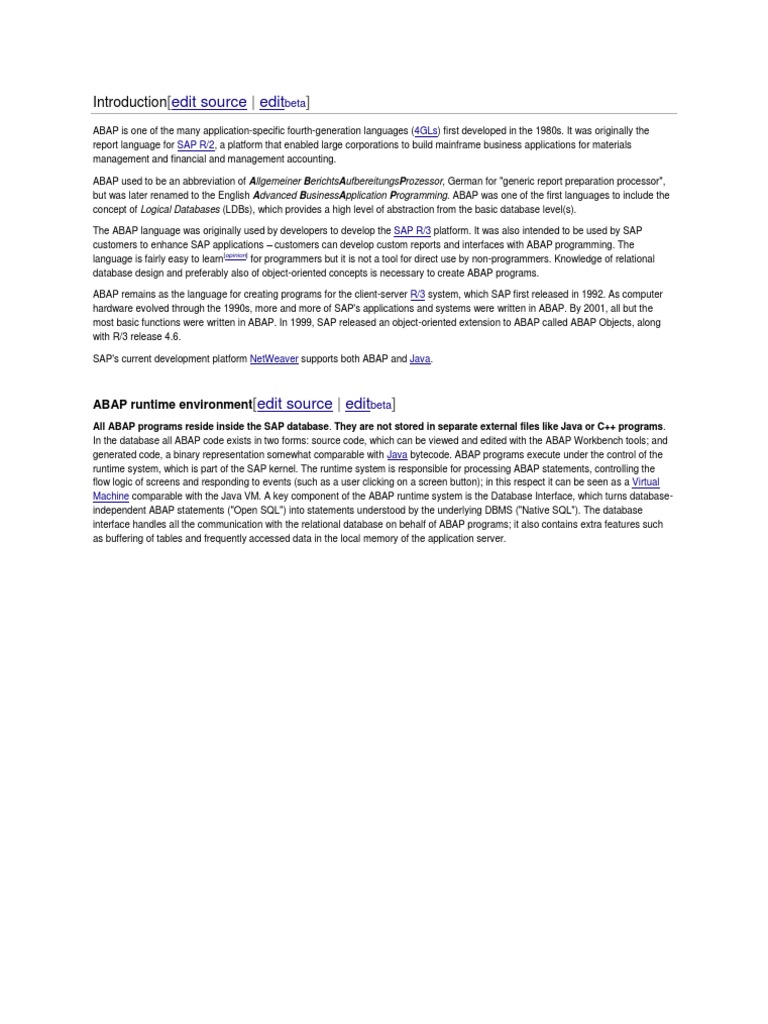 ABAP is one of the many application-specific fourth-generation languages (4GLs) first developed in the 1980s. It was originally the report language for SAP R/2, a platform that enabled large corporations to build mainframe business applications for materials management and financial and management accounting. ABAP used to be an abbreviation of Allgemeiner BerichtsAufbereitungsProzessor, German for "generic report preparation processor", but was later renamed to the English Advanced BusinessApplication Programming. ABAP was one of the first languages to include the concept of Logical Databases (LDBs), which provides a high level of abstraction from the basic database level(s). The ABAP language was originally used by developers to develop the SAP R/3 platform. It was also intended to be used by SAP customers to enhance SAP applications customers can develop custom reports and interfaces with ABAP programming. The language is fairly easy to learn[opinion] for programmers but it is not a tool for direct use by non-programmers. Knowledge of relational database design and preferably also of object-oriented concepts is necessary to create ABAP programs. ABAP remains as the language for creating programs for the client-server R/3 system, which SAP first released in 1992. As computer hardware evolved through the 1990s, more and more of SAP's applications and systems were written in ABAP. By 2001, all but the most basic functions were written in ABAP. In 1999, SAP released an object-oriented extension to ABAP called ABAP Objects, along with R/3 release 4.6. SAP's current development platform NetWeaver supports both ABAP and Java.