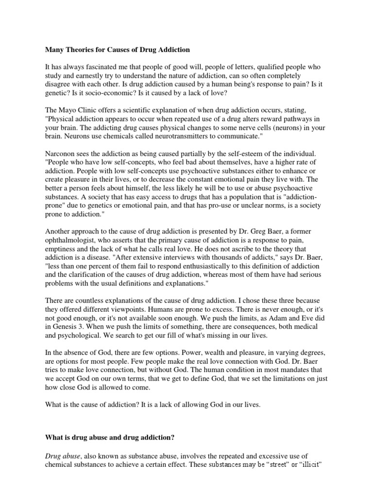 Many Theories for Causes of Drug Addiction It has always fascinated me that people of good will, people of letters,
