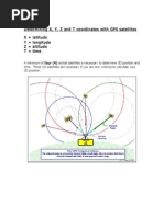GPS satellites good geometry for Geometric Dilution of Precision (GDOP). The concept of dilution of precision (DOP) originated with users of the Loran-C navigation system.[1] The idea of Geometric DOP is to state how errors in the measurement will affect the final state estimation. This can be defined as: More recently, the term has come into much wider usage with the development and adoption of GPS. Neglecting ionospheric and tropospheric effects, the signal from GPS satellites has a fixed precision. Therefore, the relative satellite-receiver geometry plays a major role in determining the precision of estimated positions and times. Due to the relative geometry of any given satellite to a receiver, the precision in the pseudo range of the satellite translates to a corresponding component in each of the four dimensions of position measured by the receiver (i.e. x, y, z, and t). The precision of multiple satellites in view of a receiver combine according to the relative position of the satellites to determine the level of precision in each dimension of the receiver measurement. When visible GPS satellites are close together in the sky, the geometry is said to be weak and the DOP value is high; when far apart, the geometry is strong and the DOP value is low. Consider two overlapping rings, or annuli, of different centres. If they overlap at right angles, the greatest extent of the overlap is much smaller than if they overlap in near parallel. Thus a low DOP value represents a better GPS positional precision due to the wider angular separation between the satellites used to calculate a GPS unit's position. Other factors that can increase the effective DOP are obstructions such as nearby mountains or buildings. DOP can be expressed as a number of separate measurements. HDOP, VDOP, PDOP, and TDOP are respectively Horizontal, Vertical, Positional (3D), and Time Dilution of Precision. They follow mathematically from the positions of the usable satellites. GPS receivers allow the display of these positions (skyplot) as well as the DOP values. The effect of geometry of the satellites on position error is called geometric dilution of precision and it is roughly interpreted as ratio of position error to the range error. Imagine that a square pyramid is formed by lines joining four satellites with the receiver at the tip of the pyramid. The larger the volume of the pyramid, the better (lower) the value of GDOP; the smaller its volume, the worse (higher) the value of GDOP will be. Similarly, the greater the number of satellites, the better the value of GDOP.
