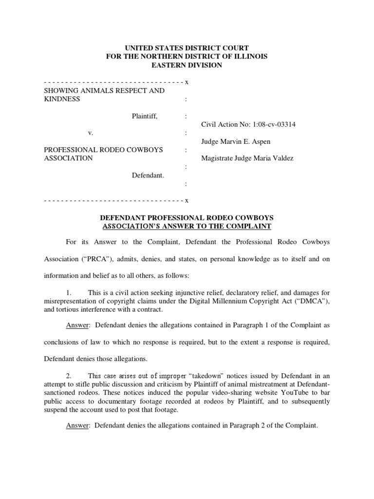 For its Answer to the Complaint, Defendant the Professional Rodeo Cowboys