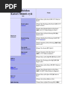 Suwari Gata Floor forms Suwari Kaiten Rolling from seated Kamae. Ritsu Waza Standing and Kneeling. Shiko Knee walking. Ichi Geki One rage. Osai Komi Pin down Hajutsu Kyu Ho Nine ways of overpowering an attacker. Tehodoki Hand escapes. Taihodoki - Body escapes. Oyagoroshi Attacking the thumb. Kogoroshi Attacking the fingers. Koshikudaki Countering a throw. Happo Giri Eight uses of kicking. Kerikudaki Countering a kick. Kenkudaki Countering a strike. Henkakudaki Variations of the two previous items. Kukishinden Ryu Hanbojutsu Kamae no Kata Kata Yaburi no Kamae Munen Muso no Kamae Otonashi no Kamae Kukishinden Ryu Bojutsu Kamae no Kata Shizen Jodan Chudan