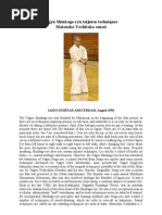 One Clap & Bow Instructor turns to face the class Instructor & Class bow to each other and say Onegashimas(u) Finishing Line up facing the back wall (opposite the office) with the highest grades on the right and the lowest on the left. Sitting in Seiza hands in gassho Chant Shikin Haramits(u) Dai Kyo Myo Two Claps & Bow One Clap & Bow Instructor turns to face the class Instructor & Class bow to each other and say Arigato Gozaimas(u) Please note that the (u) is not pronounced. An explanation of Shiken Haramitsu Daikomyo Chihaya buru, kami no oshie wa totoshi ni tadashiki kokoro, mio mamoruran Chihaya buru literally translates as a thousand quick shakes and serves as the introduction to this waka style poem. The remainder of the phrase helps to remind us that the teachings of the Kami will protect a proper heart for eternity, while a proper heart will protect all of your being. Shiken Haramitsu Daikomyo Shiken : Shiken is the sensation and the harmony perceived by the sense of hearing and heart. It is also the creative sound result of polar opposites uniting (in/yo, yin/yang, man/woman) Haramitsu : Also know in Sanskrit as Paramita (one of the Ksanti Paramita) which is Buddhas Satori or a permenant state of spiritual awaking that transcends the limitations of life and death. The general idea behind the 6 Paramita is freedom from bearing grudges, pain or jealousy and building endurance in a relationship with the world outside of yourself. Hatsumi Senseis idea fosters sincerity, loyalty and faithfulness. Daikomyo : In Buddism, it is the big bright light of Buddha. For us, it is the illumination from your inside to your outside. This can be experienced as the light of your heart on a physical plane.