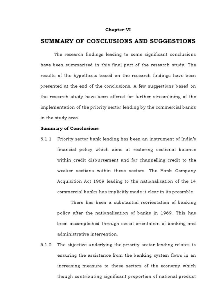 whole process of scrutiny of applications is completed. Expeditious release of loan must be ensured. 4. The priority sector loans provided by the commercial banks in the study area have been more in favour of farm sector compared to other priority sectors. Thus there is imbalance in the distribution of loan amount among the borrowers belonging to different priority sectors. This imbalance needs to be overcome by providing an equitable distribution of loan to the different priority sectors. 5. The involvement of the six commercial banks in the priority sector lending is not uniform. The study has revealed that the involvement of some commercial banks is more intense while others have lesser involvement in terms of the volume of loan amount provided to the borrowers. This trend of unequal involvement does not serve the real purpose of providing adequate quantity of credit to the borrowers. Hence the Government and the RBI should monitor the involvement of different banks to adequately provide the credit to the borrowers under the priority sector lending. 6. The commercial banks providing priority sector loans should properly supervise the use of the loan by the beneficiary loanees, so that the loan amount is used for the purpose for which it is obtained. The incidence of diversion of loan to other purposes has been identified during the research study. Hence the sectors for which the loan is intended to be used may be denied if there is no proper check and supervision over the utilisation of loan by the 197