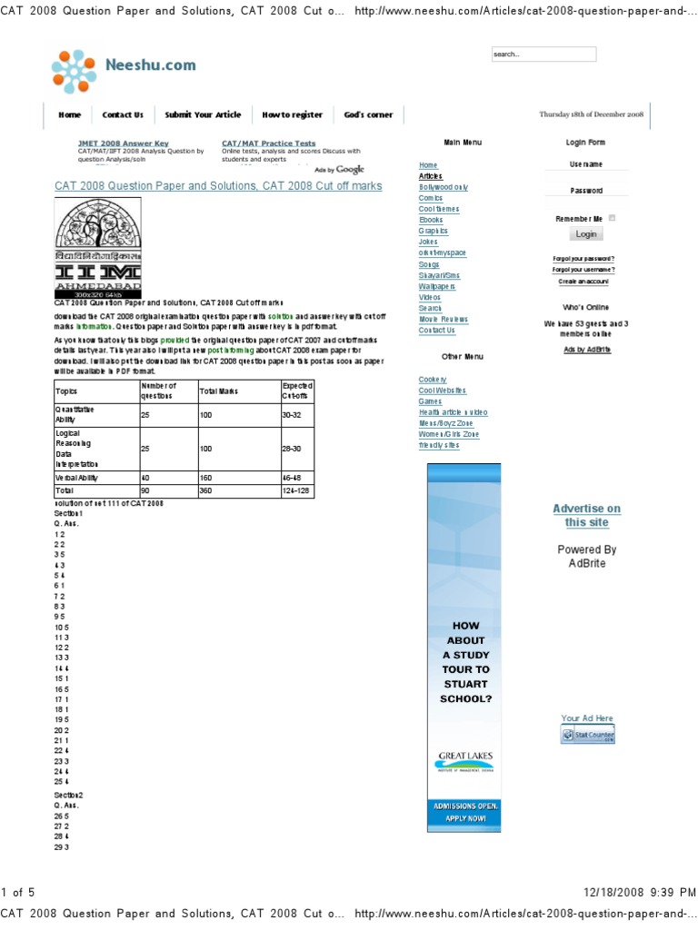CAT 2008 Question Paper and Solutions, CAT 2008 Cut o... http://www.neeshu.com/Articles/cat-2008-question-paper-and-...