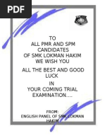 and challenging activity, we can go jungle trekkingat in the thick forest nearby. Get ready for the rush of adrenaline and some itchy mosquito bites. The interesting part is if we are stuck in the middle of the jungle, we have to think out of the box to figure the way out. Lets see how good our brain works coping with adversities in the middle of a jungle! Before I pen off this letter, send my regards to all at home. Dont forget to share the pictures and brochures that I have attached to this letter with everyone. I hope you give me will come to a good decision! Sincerely, Venice [Marks: A 21] Interesting words/expressions: 1. in the pink 2. just around the corner 3. busy as a bee 4. pass the exam with flying colours 5. strenuous effort 6. elated 7. seize this golden opportunity to relax our mind and soul 8. ebullient 9. scouring 10. the hustle and bustle of the city 11. jaw drop 12. caressed by the cold breeze 13. This serene waterfall is framed by the lush green forest. 14. ..blissful tropical wonderland. 15. The sounds of birds chirping happily 16. this heavenly waterfall is just 20km from the bustling Johor Bahru town 17. a stones throw away 18. remembrance 19. ..do not compromise visitors on the facilities and comfort 20. hygienic 21. to bear the nasty smell 22. The incident stands out prominently whenever my mind travels to the past 23. ..laugh my lungs out remembering it. 24. to swim in the crystal blue water which sparkles like stars when the sunlight shines on it. 25. ..the rush of adrenaline 26. to think out of the box 27. ..coping with adversities in the middle of a jungle References: 1. A S Hornby, Oxford Advanced Learners Dictionary Fifth Edition (1998), Oxford University Press 2. (the use of so) http://grammar.ccc.commnet.edu/grammar/conjunctions.htm#so