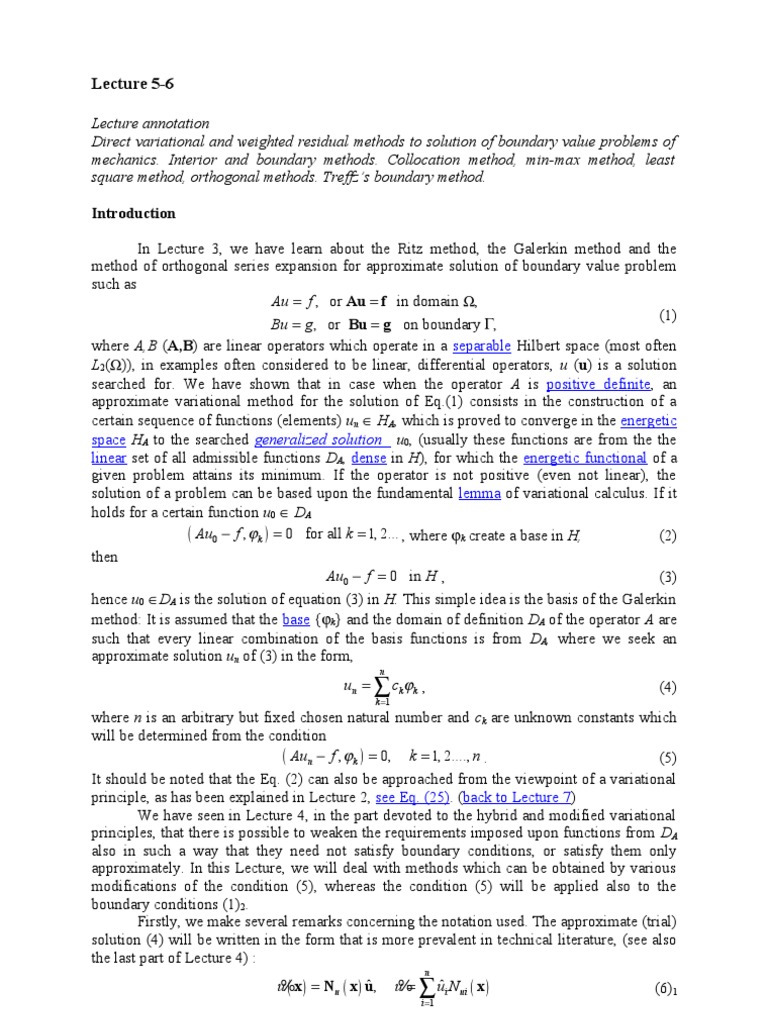 is the solution of equation (3) in H. This simple idea is the basis of the Galerkin