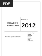 In a casual dining restaurant like Pizza Hut, Services rests on the production process, to ensure a proper flow of service management, it is very mandatory for pizza hut to have their production process quick and responsive, to serve this purpose, following is the production process observed by Pizza Hut franchisee: The raw materials required for the production of pizzas, pastas and desserts that include flour, vegetables, meat, cheese, sauces, etc. are being kept in stock at the warehouses. The dough for pizzas and the pre-preparation processing of pastas and desserts is being done well in advance, before the need arises. Once the pre-preparation processing is done, then the material is brought to the kitchen of Pizza Hut, wherein the dough and the other pre preparatory materials are being utilised as per the demands. Production process is being done at 3 different layouts of kitchen at Pizza Hut viz. Middle of the House, Back of the House and Front of the House . The middle of the House area is being used to make Pasta, The back of the house area is being used to make pizzas and the front of the house area is used to prepare beverages/drinks. To maintain a smooth supply chain, the products are allotted certain time limits and the production is bound to complete within the time range. The process of preparation of pizza is timed at 7 min, the process includes: Dough processing: the dough is made ready for making a pizza by kneading it to a desired consistency; it is done for about 1 min. Base making: In this process, the dough is then flattened into a bake tray, which is specially designed for Pizza Hut, which reduces the Baking time by 50%. The bases are made in various sizes according to the customers choices, Base sizes are classified into small, medium and large. The time set for this process is ~1 min. Toppings: Once the base is ready, the toppings are being put on it, toppings are chosen by the customer, and includes both vegetarian and non-vegetarian ingredients. Time set for this process is ~2 min. Once all the steps are completed, the pizza is then set to bake for around 2 and a half minutes on a double convection Oven, which is specially designed for Pizza Hut. And then an employee cuts the pizza on the cutting table, and is allotted 30 seconds to complete this job, thus the pizza is ready within 7 minutes. The process time set for preparation of pasta is again 7 minutes. The beverages and drinks have to be served at the customers demand, and they have to be prepared at a constant basis.