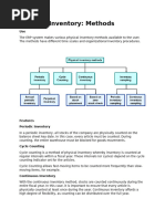The two types of inventory systems that are common in business are periodic and perpetual. Both involve tasks or activities that relate to the physical and accounting methods of reconciliation. The periodic system is somewhat easier, as it only requires for the recording of financial inventory information on a monthly, quarterly, or annual basis. For example, the general ledger will include a starting figure for the quarter. Accountants will add the total inventory purchases for this time period, deduct sales and adjustments, and then present a final figure on the companys balance sheet. Physical inventory counts under the periodic method are typically quarterly or annual. More frequent counts may be necessary if theft occurs, or if a significant number of inventory products continually wind up damaged going through the companys processes.