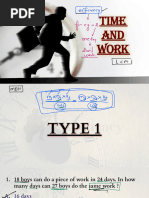 Men and Time are inversely proportional i.e., when more men work, they take less time to complete the work. Similarly when less men work, they take more time to complete the work. Men and Work are directly proportional i.e., when more men are there, they do more work and less men are there, they do less work. Similarly, Time and Work are also directly proportional. If men work for more time then they do more work and less time then the work is also less. The relation among these variables can be shown in a formula If M is Men, D is Days (Time) and W is work then