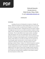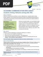 What is the Format? Journals are generally prose, but not necessarily so! In fact, the less you make your journal look like an essay, the more likely you will be able to reflect. Reflection happens when you get outside of your academic head and into your heart, soul, and gut. We DON'T evaluate what you reflect on, what you observe, how you interpret the situation, or what action plans you make. Often we CONVERSE with you about what you write, but we DON'T evaluate it. We DO evaluate the process of reflection. Your journal entry can be: Visual by capturing or including a mind map, pictures, photos, lists, doodles, sketches, ticket stubs, programmes Audio by recording a poem, song, interview, soliloquy, narration Moving video by recording an interview, soliloquy, travelogue Have a look at the sample reflective journal entries and take note of the different topics people have written about and the formats they have used to explore their experiences. What gets graded? We grade the process of reflection. We look to see if you are collecting enough objective and reflective data to be able to make sense of the experience AND recognize it if you see it again. The interpretive data needs to be a logical outcome of the observations and based in some concept you learned in class. The decisional data needs to logically follow the interpretation and present an reasonable action plan in the SMART goal format. A good rule of thumb: your journal sound have approximately the same amount of data in each section. Some people find certain data easier to capture than others do. So, this rule of thumb is a good way to ensure you spend enough time in the places you are not proficient and not too much time capturing data that is easy to find. The attached rubric outlines the requirements for a single reflective journal entry. What doesnt get graded? Although your faculty may make comment on the substance of your reflective journal entry, that part isnt graded. Think of those questions and comments as the conversation your faculty is having with you about your experience, interpretation, or decisions. To make the distinction obvious, some faculty change to a different colour when they switch from grading to conversing. If you are not sure, feel free to seek clarification! What should I write about?