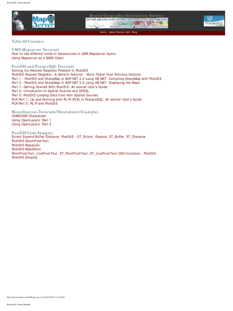 This Document is available under the GNU Free Documentation License 1.2 [Link] & for download at the BostonGIS site [Link]