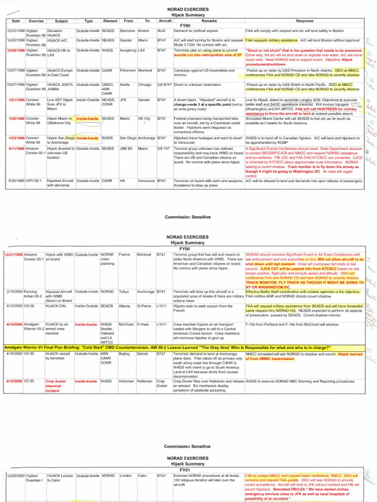 10/20/2000 Vigilant HIJACK London Outside-Inside NORAD London Cairo B747 Exercise NORAD procedures at all levels. FAA to contact NMCC and request hijack conference. NMCC, 000 will