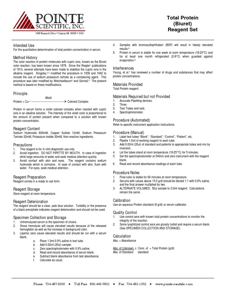 Total Protein (Biuret) Reagent Set