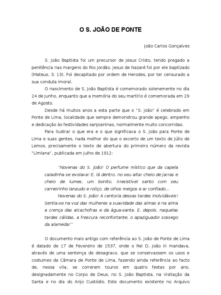 importância para Ponte de Lima que os festejos em honra de S. João