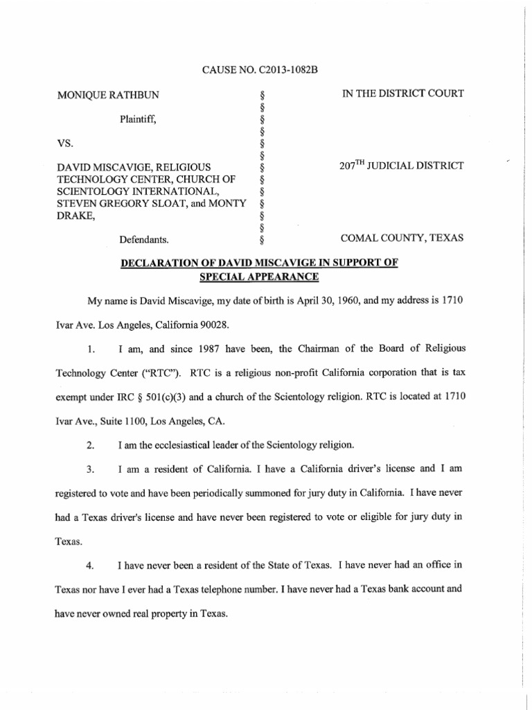 DAVID MISCAVIGE RELIGIOUS TECHNOLOGY CENTER CHURCH OF SCIENTOLOGY INTERNATIONAL STEVEN GREGORY SLOAT and MONTY DRAKE Defendants.