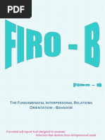 June 14, 2012 Firo-B FIRO-B for personality Development It is a research-based fact that around 85% of our professional success and personal happiness depends on how good our human relations skills are. In other words, the happiest and most fulfilled people are those who have learned how to get along well with others means what and how much they do for others and what and how much they expect from others.. Living and working happily with others is surely a skill worth developing! We are, therefore, happy to offer you the tool to understand yourself and judge yourself in your three major interpersonal needs that is Inclusion, control and Affection, and this you can do and rely on the toll called.. The FIRO-B The FIRO-B (or the Fundamental Interpersonal Relations Orientation) is a powerful psychological tool and personality assessment instrument which millions and millions of people benefit from annually. First conceived in the 1950s the FIRO-B has undergone more than 50 years of rigorous research ,and is proved that it is one of the most amazingly accurate self-assessment tools known to mankind. The FIRO-B helps you do to know yourself, invest in your own growth, unlock your greatest potential and build productive and happy interpersonal relationships. Why should you take the FIRO-B? There is nothing wrong or right in its assessment, there is nothing good or bad about its interpretations, The out come of FIRO-B assessment is just a hypothesis of your behavior when it comes to your interpersonal relationships. The FIRO-B assessments narrates how you typically behave towards others and how you expect them to act towards you. Its interpretation can dramatically increase your understanding of behavior and help you to: Manage your behavior and its results, both in leadership and support positions and in everyday life Recognize the sources of, and possible solutions to, stagnation and conflict, both on the job and personally Increase personal productivity by increasing your awareness of personal interpersonal dynamics Respond well to the needs of others Build more satisfying relationships