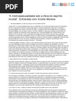 agora, eu estou muito satisfeito com o resultado. Trabalhando no Brasil, com msicos brasileiros e com tcnicos brasileiros, a gente conseguiu um bom resultado. (1995) SONHO DE CONSUMO No tenho. (1994) SONHOS Ah, fazer cinema o meu sonho! Fazer roteiro e msica tambm, mas mais complicado. (1995) Como aquela frase? Quem mais sonha quem mais faz. Eu sonho o tempo todo, desde os tempos em que ouvia Bom to run, do Bruce Springsteen, e queria fazer o mesmo com uma superbanda num superpalco. (1995) Eu queria alguma coisa ligada palavra, ser jornalista, escritor. Ou, ento, trabalhar com algo ligado expresso artstica. E, de preferncia, uma coisa que me desse muito dinheiro, fama e sucesso. Ah, meu sonho era ser um dos Beatles! (1995) SORRISO Eu tenho um lar, amigos, um bom emprego. Eu estou num pas fodido da porra, mas eu tenho casa e tenho emprego. Sei l, quando chegar algum meio mal, poder oferecer um sorriso... Sabe, esse negcio cafona que ningum d valor. S que, hoje em dia, existe a mitologia da violncia. Bom, tem que ter um pouco de pimenta; seno, fica aquela coisa babaca. Sei l, poder dar umas boas risadas... (1987) Posso estar no maior mau humor do mundo, mas s eu olhar um bebezinho, pronto, felicidade pura! Agora, como voc vai colocar isso em msica? So coisas que no se verbalizam. E o sorriso. E, na hora em que voc est pensando no seu trabalho, voc quer preservar esses momentos para que eles sejam ncoras para o seu futuro. (1989) 245 R en ato R uss o d e AaZ r F, STONEWALL [levante gay, ocorrido em 1969, nos Estados Unidos] Em 1969, houve uma batalha pelos direitos civis nos Estados Unidos hoje em dia, l, todo mundo se detesta, mas, naquela poca, os negros estavam do lado dos hippies, que estavam do lado dos intelectuais etc. E tinha um barzinho que ficava justamente na Christopher Street com Stonewall, ali no gueto, no Village. Aquilo, desde os anos 20, era um antro, o bairro bomio. E chegou a polcia. E os policiais chegaram para prender e para bater em todo mundo. De repente, algum no se sabe quem falou: No vamos aceitar isso!. Naquela poca, tinha muito travesti; hoje, no tem mais. E at os travestis comearam a pegar pedras, pedaos de pau... Durante cinco horas, na rua, eles lutaram K com a polcia e, a partir daquele momento, nasceu a noo de gay pride [orgulho gay]: Ningum vai pisar em cima de mim. Aquela resistncia em Stonewall virou smbolo do movimento todo. (1990) A questo do Stonewall est sendo resolvida. Se, nos Estados Unidos, os direitos dos gays esto atrasados, imagina por aqui. Os nicos que esto chegando l so os povos escandinavos. E no falo s dos gays. L, a mulher, os negros, as crianas, as minorias em geral tm maior liberdade. (1994) lHE STONEWALL CELEBRATION CONCERT [disco solo, cantado em ingls] O projeto nasceu numa reunio da campanha do Betinho [Ao da Cidadania pela Vida e contra a Misria e a Fome], na casa do Marco Nanini. Pensamos em fazer um recital com as msicas que eu canto sempre, como algumas canes do Gershwin, mas o recital acabou nunca