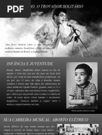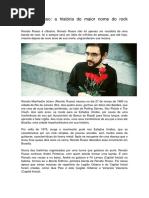 1 276 R e n a t o R u s s o d e A a Z Y- YOU ARE NOT ALONE A coisa que eu mais invejo voc fazer You are not alone, do Michael Jackson. E muito dificil. Voc pegar frases de cinco palavras, aquelas rimas pobres e vocabulrio batido, e fazer algo que emocione as pessoas complicado. E muito fcil ser Nick Cave. Se no passar emoo, no tem texto que segure. Existe uma maneira de voc usar a emoo com inteligncia e sensibilidade. (1995) 277 t I\4 J 5 u w 1? e n a t o R u s s o d e A a Z ZE ZUL 1 Com a Legio, eu no preciso pensar em nada. J, sozinho, eu aprendi tcnicas de produo, como fazer arranjo clssico de msica pop. Passei pela experincia de cantar com outros msicos, mexi com produo de repertrio, que nunca tinha feito na vida. Agora j estava pensando em fazer um disco em zulu! (1995) 5 LI x 2 7 9 FONTES CONSULTADAS 1. Entrevistas, reportagens, artigos e livros: A Legio depois da tempestade. Zero Hora, Porto Alegre (RS), 25 de julho de 1997. Abramo, Bia. A face oculta de Renato Russo, Bizz, abril de 1986. Abramo, Bia. Um dolo reticente, Jornal da Tarde, 12 de outubro de 1996. Albuquerque, Tereza. A Turma da Colina, Correio Braziliense, 6 de setembro de 1998. Alexandre, Ricardo. Nunca mais os filhos da revoluo, O Estado de S. Paulo, 26 de setembro de 1996. Almeida Filho, Luciano. Um ano depois, O Povo, Fortaleza (CE), 11 de outubro de 1997. Antenore, Armando. Russo iria compor pera sobre paixo gay, Folha de S. Paulo, 15 de outubro de 1996. Antunes, Alex. Legio errante: a longa jornada do trio, da fbrica de