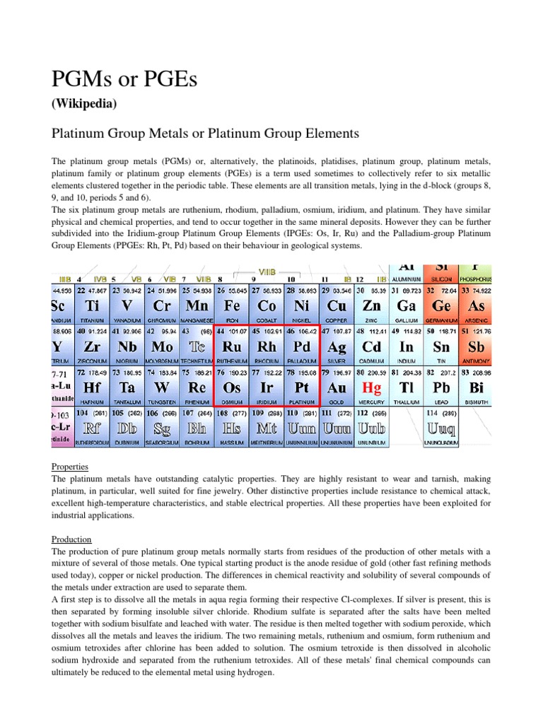 Platinum Group Metals or Platinum Group Elements
