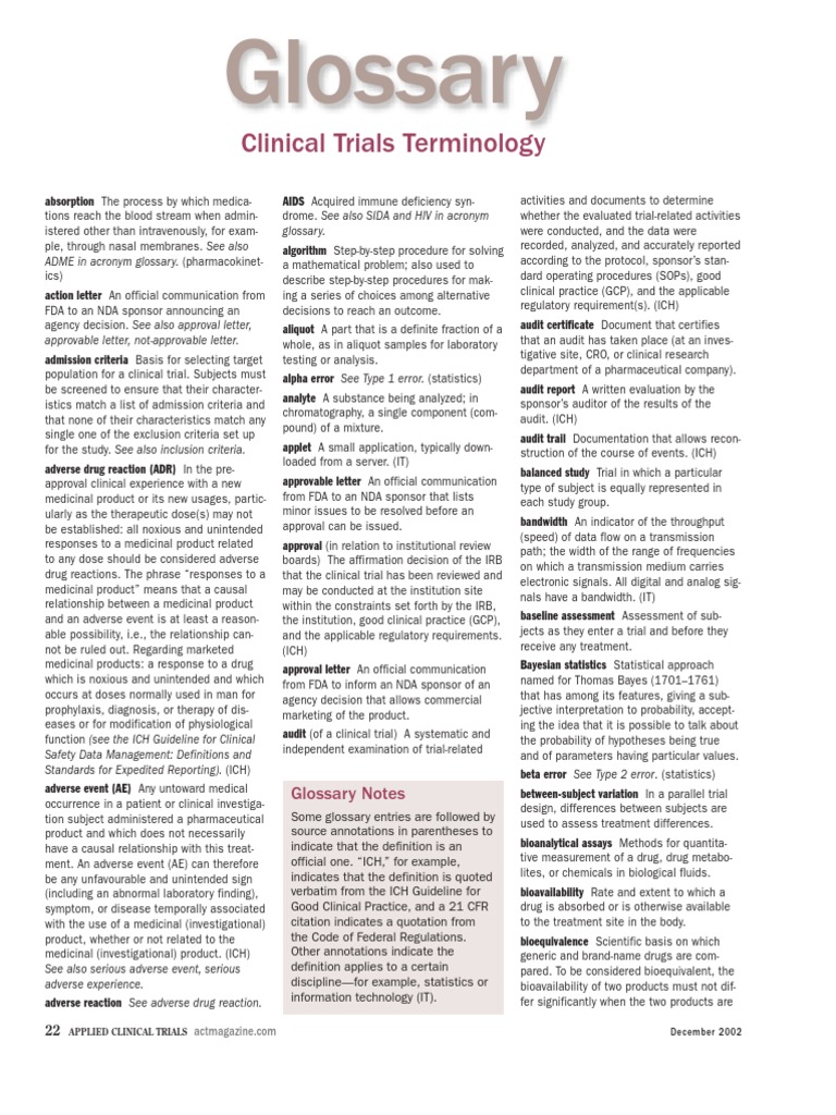 22 APPLIED CLINICAL TRIALS [Link] December 2002