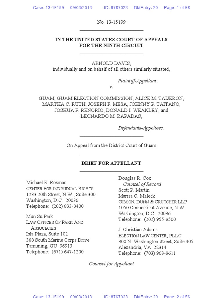 Brief for Arnold Davis in Davis v. Guam before 9th Circuit Court of Appeals.