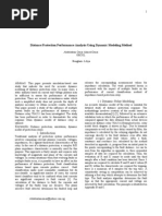 Classic distance relays determine an apparent impedance directly from the relaying voltage and current: V A relay Z A relay = (2) I A relay Such simplification is utilized since the fault path is supplied from both sides of the transmission line and the total fault current is not measured by the relay utilizing only oneend measurement data. In consequence of that, the measured apparent impedance is equal to the faulted line section impedance only in case of solid faults: Z A relay = d Z 1L if: R F = 0 (3) Otherwise (resistive faults), due to the reactance effect the determined apparent impedance (2) is not a strict measure of the distance to fault. Under unfavorable fault conditions, i.e. for high resistance faults appearing close to the reach of the first protective zone, but inside it, such a fault can be identified as occurring outside the zone. This leads to delaying of the relay operation since such a fault will be cleared by the next zone impedance element (with set longer time delay). Explanation of particular operations of distance relays can be performed with use of the post-fault analysis program presented below. In this program besides the method applied in the classic distance relays (2), the two-end fault location based method is incorporated. The latter method is not affected by the reactance effect and therefore allows verification of the former one. III. TWO-END FAULT LOCATION APPROACH A. General model of two-end measurements of distance relays The measurements of distance relays from both sides (A and B) are considered as performed asynchronously. Assuming the measurements of the relay B as the reference, the signals of the relay A are considered with including the unknown synchronization angle (), i.e. multiplied by the shift operator: e j = cos() + jsin() (4) In the models from Fig. 3a (for relay A) and in Fig. 3b (for relay B) there are longitudinal branches represented by impedances of the line sections AF and BF for the positive