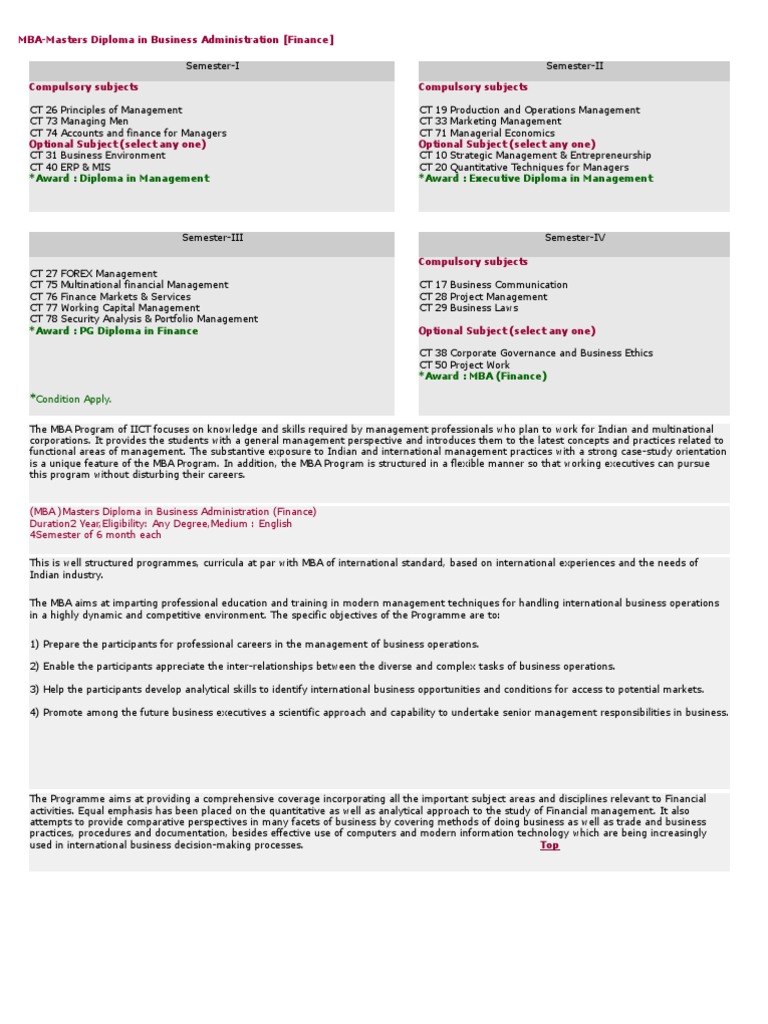 MBA-Masters Diploma in Business Administration [Finance]
