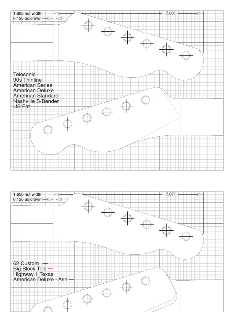 Jazzmaster outline oddity: tuner holes moved outward the 24.75 scale telesonic was drawn with the std positioning