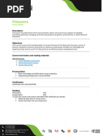 Creating a Work Breakdown Structure Defining a Work Breakdown Structure Creating the WBS Hierarchy Adding Activities Describing an Activity and its Components Describing Activity Types Adding Activities Adding a Notebook Topic Adding Steps to an Activity Assigning Activity Codes Creating Relationships Viewing a Network Logic Diagram Relationship Types Creating Relationships Scheduling Performing a Forward and Backward Pass Describing Float Assigning Constraints Applying an Overall Deadline to a Project Apply a Constraint to an Activity Maintaining the Project Documents Library Creating a Document Record Linking a Document Record Formatting Schedule Data Grouping Activities Sorting Filtering Roles and Resources Describing Roles and Resources Viewing Dictionaries Assigning Roles Assigning Roles to an Activity Assign Rates on Roles Assigning Resources Assigning Resources Adjusting Budgeted Units/Time Analyzing Resources Displaying the Resource Usage Profile Optimizing the Project Plan Analyzing Schedule Dates Shortening a Project Schedule Analyzing Resource Availability Baselining the Project Plan Creating a Baseline Plan Display Baseline Bars on the Gantt Chart