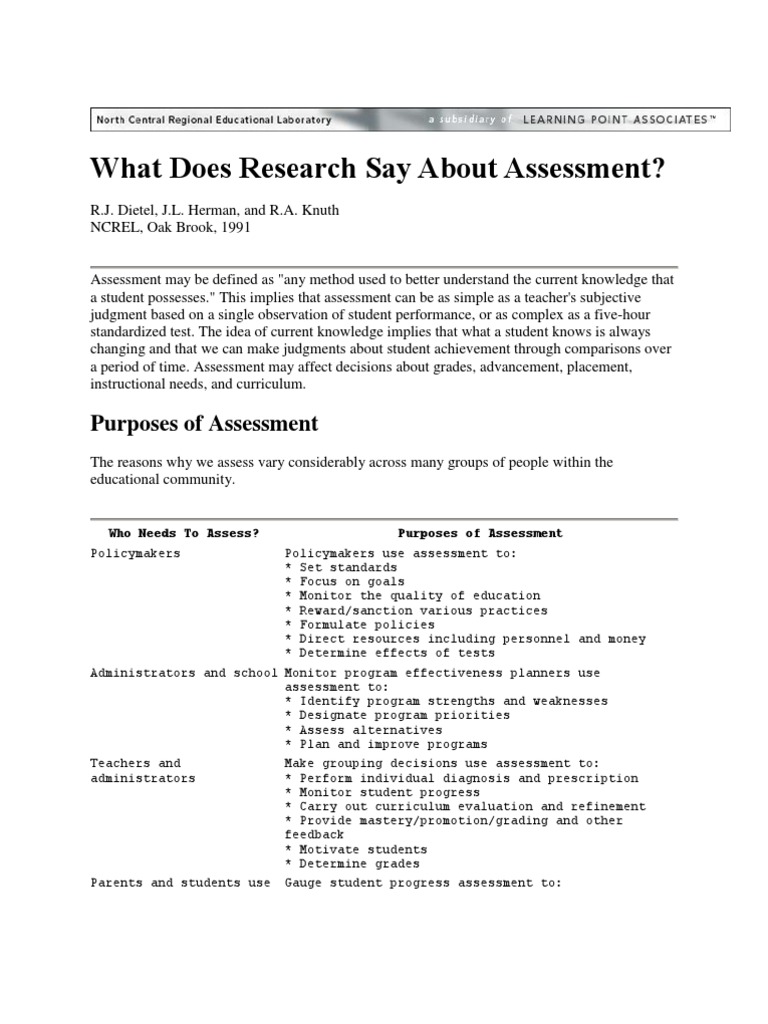 What Does Research Say About Assessment