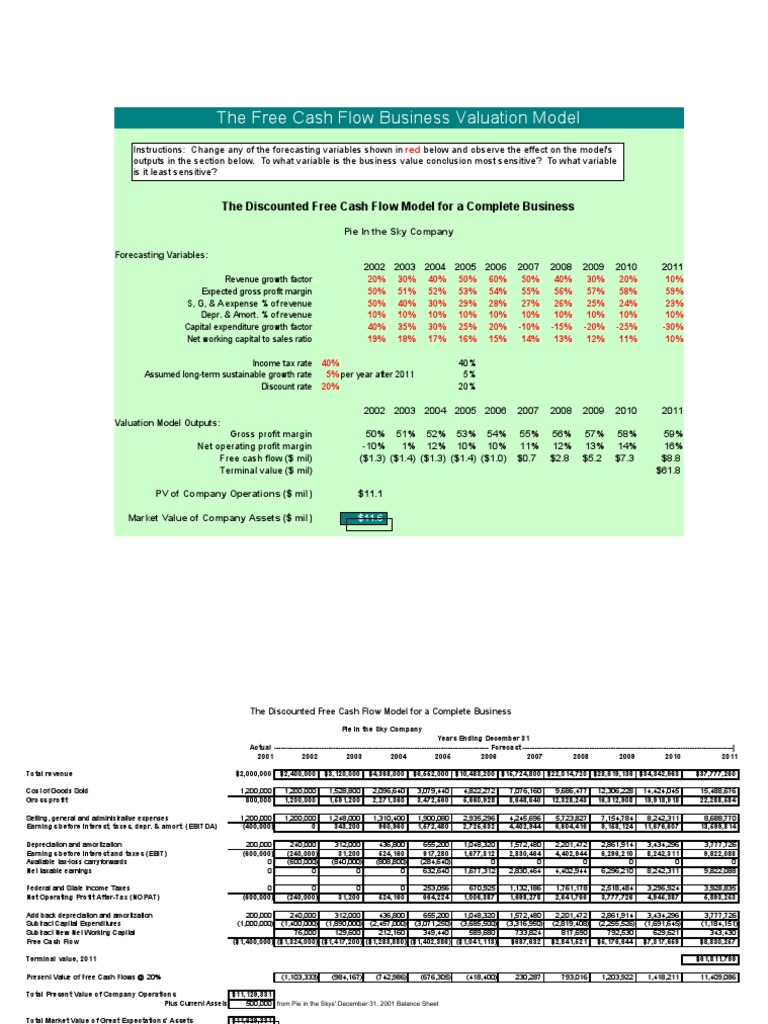Present Value of Free Cash Flows @ 20% (1,103,333) (984,167) (742,986) (676,305) (418,400) 230,287 793,016 1,203,922 1,418,211 11,409,086