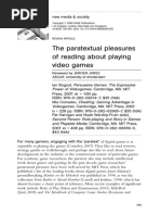 course, if that was the case, the theorists life would not be very enjoyable because that would take the challenge out of our jobs, something that Tom Sawyer also found to be particularly problematic: Tom said to himself that it was not such a hollow world, after all. He had discovered a great law of human action, without knowing it namely, that in order to make a man or a boy covet a thing, it is only necessary to make the thing difcult to attain (1876: 24) Play has been and will likely continue to be a puzzling activity for researchers. Far from being an obstacle, its ambiguity is what is so appealing about it. Play is often presented as a wild, free activity, in opposition to the structured, ordered game. However, as Salen and Zimmerman (2004: 304) so elegantly have stated, play emerges as a negotiation between the players freedom and the games structure. However, these two perspectives are hard to reconcile. A systemic approach that favors the games structure provides a clear benet if we are interested in the authorial view, since it offers tools for understanding the design techniques that the game puts into place. It lacks, however, explanatory power to deal with player behavior that does not perfectly match the designers intentions. The solution is not to replace a systemic approach with a player-centric one, because the player never really plays alone but in collaboration with the designer. That being said, in certain cases it may be useful to favor one perspective over the other, but only as long as we are aware of the limitations of each position.