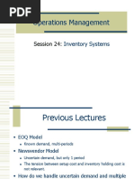 Order quantity = EOQ Replenishment rule: Order EOQ units when IP R. Total Q system cost: C = Periodic review system: Target inventory level (T) = Average demand during the protection interval + Safety stock = d(P + L) + zP+L Protection interval = Time between orders + Lead time =P+L Review interval = Time between orders = P Standard deviation of demand during the protection interval = P + L = t P + L Order quantity = Target inventory level Inventory position = T IP Replenishment rule: Every P time periods order T IP units. Total P system cost: C =
