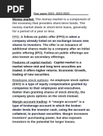 IPO (Initial Public Offer) is a type of public issue of securities where an unlisted company makes a fresh issue of securities or an offer for sale of its existing securities for the first time to the public. 9. Define underwriting. A significant intermediary in issue market is the underwriters to issue of capital who take up securities which are not fully subscribed. Underwriter is a person who agrees to take up shares specified in the underwriting agreement of the public, who fails to subscribe them. SEBI has allowed merchant bankers and registered underwriters to act as underwriters. To act as underwriter, a certificate of registration must be obtained from SEBI. The underwriter makes profit on the difference between the public offering price and the price paid to the issuer; and that is called the underwriting spread or price spread. Underwriters are appointed by the issuing companies after consulting with the merchant bankers to the issues 10. Write short note on bankers to an issue. The bankers to an issue engage in activities such as acceptance of applications along with the application money from the investors with respect to issues of capital and refund application of money. Bankers to an issue accept applications with the subscriptions offered at their designated branches and forward them to the registrar in agreement with instructions issued to them. They undertake publicity to the issue by distributing publicity material, prospectus and application forms. They are entitled for brokerage on shares allocated against applications bearing their stamps. In case of large issues, sufficient numbers of banks with branches at major centres are appointed. According to SEBI regulations, registration of bankers to issues with SEBI is compulsory. Under the regulations, inspection of bankers to an issue is done by Reserve Bank on request from SEBI. 11.Write short note on brokers to an issue. Brokers are mainly concerned about obtaining the subscription to the issue from the prospective investors. The appointment of brokers is not compulsory. Members of established stock exchange are appointed as brokers to issue. Companies are permitted to appoint any number of