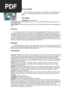 almost exclusively for court functions. In this respect, the masque does confirm that the wedding is an important oneeleven were actually performed at the court of King James, and some of these for occasions of the marriage of rich and important people. Masques were special ritual-type plays in which the monarch was always the protagonist, and the subject was how royalty made things harmonious and resolved tensions between people. Although Shakespeare's masque took some inspiration from earlier ones, thematically it is entirely innovative. Royal power is displayed as power over nature, and the idea of the masque as the projection of a royal vision first appeared in this masque in The Tempest, and were to appear again in Jonson's court masques of later years. Once again, Prospero almost loses control because he is absorbed by his art; but here, he is able to shake himself from his reverie, and becomes conscious of time again. The moment is important because Prospero is in real danger of losing control, and almost gives up his chance to act because of the pull of his magic. The moment is a humanizing one for Prospero, as he realizes his mortality and his forgetfulness, as well as the limits of his magic. The masque, which he created from his own power, disappears in an instant; and finally, Prospero realizes that his works of magic are all in vain, as they are made of baseless fabric and will not last. He sees that we are such stuff as dreams are made on, and at last realizes that his mind has aged and his powers are fragile and faltering (IV.i.166-167). It is a sobering moment for Prospero, to admit his weakness and infirmity; and this marks the beginning of his surrender of his magic. It is not Caliban and his drunken friends, whom Ariel describes in a simile as being like unbacked colts, that Prospero has to worry about (l. 176). Indeed, the thought of Caliban upsets Prospero more than the plot, as Prospero again curses the one on whose nature nurture can never stick (188-89). Prospero thinks that Caliban is bad because he has not adopted the civilized ways of thinking that Prospero has, and must be bad natured because of this; but Prospero fails to realize that Caliban's relative goodness has been more spoiled by the way Prospero treats him than by any refusal to adopt foreign ways of thinking. Prospero, for all his learning, still espouses a haughty, colonial point of view when it comes to Caliban, and lets this prejudiced treatment corrupt a potentially good man's nature. Analysis of Act V Prospero's first words suggest an alchemic metaphor; the words gather to a head denote things coming to a climax, but also liquid coming to a boil, and Prospero's project is a kind of scientific experiment as well. Prospero, with his