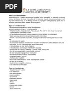 Advertising is a type of communication whereby people promote or persuade customers to utilize their services. There are two types of advertisements: 1. Classified advertisements 2. Display advertisements Classified ads will be our subject in this article. Classified ads are called CLASSIFIED ADS because they are CLASSIFIED into different type of categories depending on their functions.