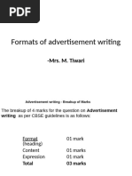 1 mark Heading (Should be in CAPITAL letters only) 2 marks Content 2 marks Expression with certain grammatical factors Do crosscheck with your subject teacher to check for the updated marking scheme. NOTE: Classified Advertisements should be enclosed in a box.